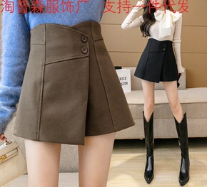 不规则裙加厚毛呢裤裙女短裤2021冬季阔腿裤高腰a...