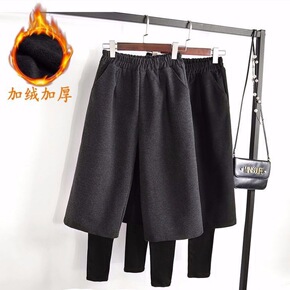 假两件裤子秋冬季加绒加厚毛呢阔腿裤女显瘦韩版保暖打...