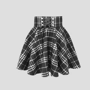jk格子裙高腰百褶裙女大码弹力百褶裙半裙日系学院风...