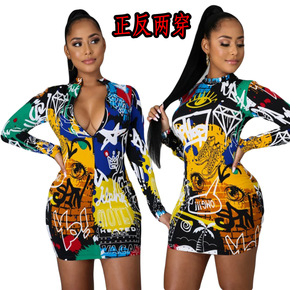 JY21339暗黑风2022欧美新款性感修身连衣裙...