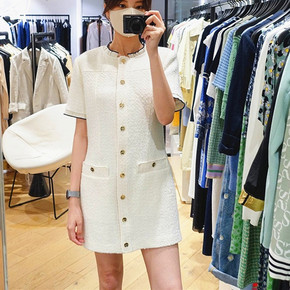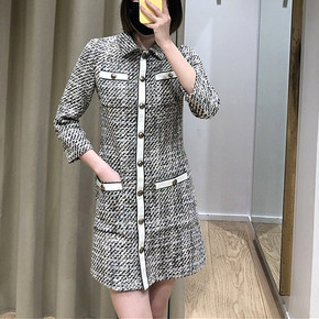 法单 S家2021秋冬新款粗花呢假两件勾花翻领...