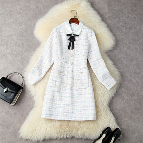 跨境秋冬新款名媛气质小香风西装连衣裙女收腰显瘦长袖...