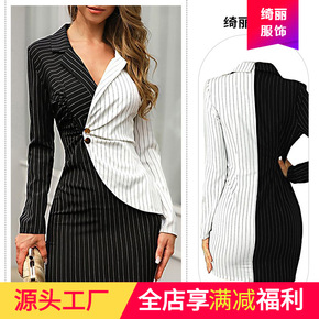 包臀修身职业西装裙女连衣裙撞色亚马逊wish跨境秋...