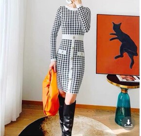 面料名称:聚酯纤维 主图来源:实拍有模特 货源类别:现货 风格:性感 图案:千鸟格 工艺:拼...