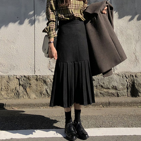 实拍图日系毛呢背心女2021冬季新款中长款马甲裙子...