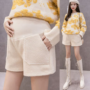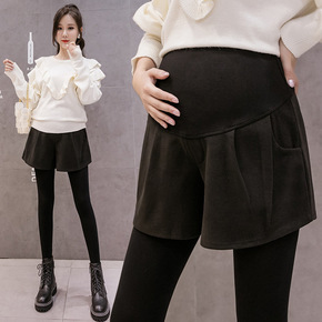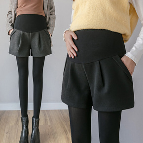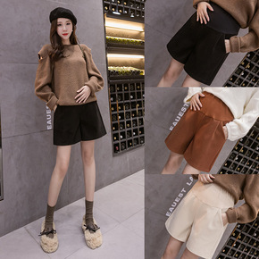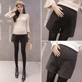 2020秋冬新款条纹孕妇短裤时尚毛呢a字外穿靴裤宽...