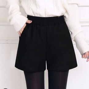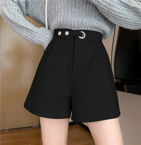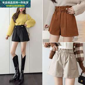 高腰毛呢短裤女秋冬百搭修身显瘦呢子A字裤学生外穿休...