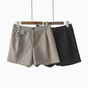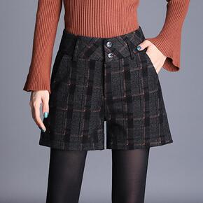 新款女装胖MM毛呢裤短裤高腰韩版时尚百搭冬款裤子k...