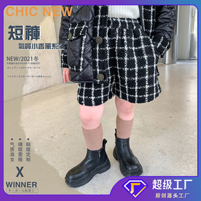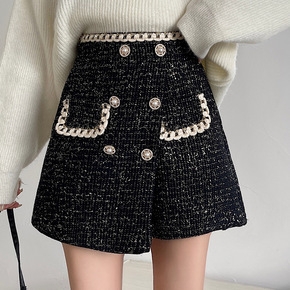 2021秋冬新款时尚亮丝格子毛呢短裤半身裙短裙A字...