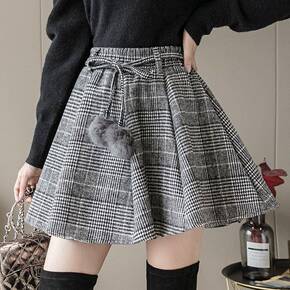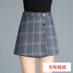 格子毛呢裤裙短裙防走光A字裙呢子半身裙女秋冬202...