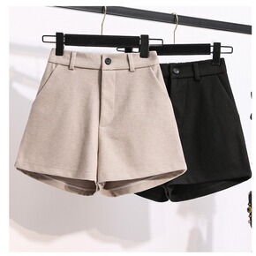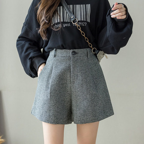 大码毛呢短裤女秋冬2021新款高腰宽松减龄显瘦阔腿...