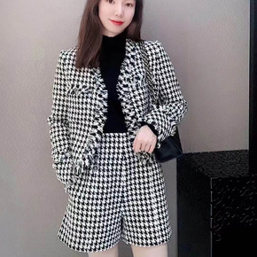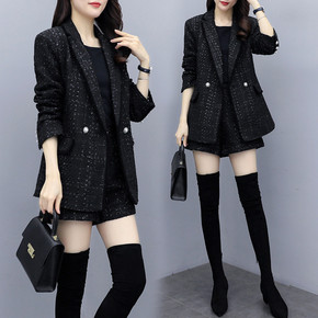 2021春秋新款女装宽松大码两件套西装外套短裤时尚...