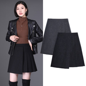 毛呢半身裙女秋冬202新款不规则高腰a字短裙裤显瘦...