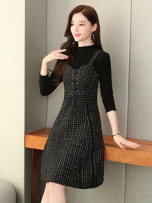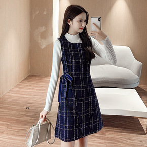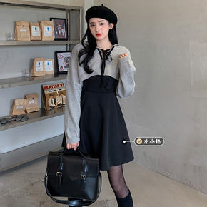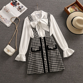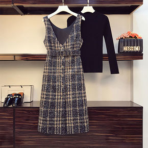 网红 胖妹妹显瘦套装小香风背带连衣裙秋冬时尚减龄...