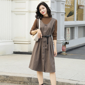 毛呢背心裙女春秋季连衣裙女小香风无袖马甲裙女中长款...