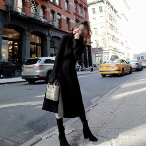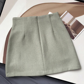 2020秋季新款 修身双面呢过膝腰裙 半...