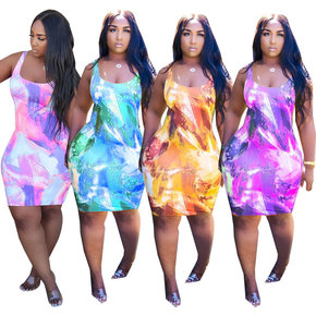 YM5003 欧美女装 时尚 扎染连衣裙...