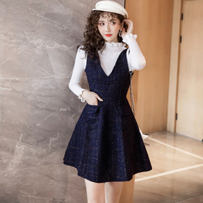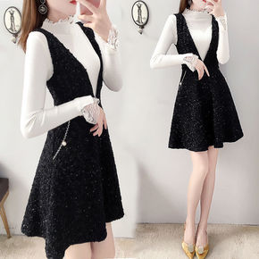 实拍小香风毛呢背带裙连衣裙可爱秋冬款2021年新款...