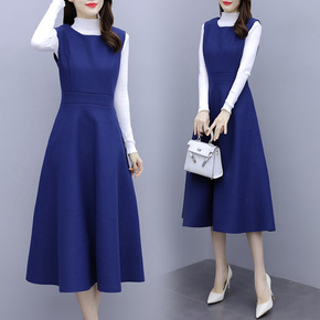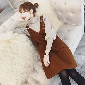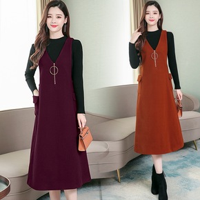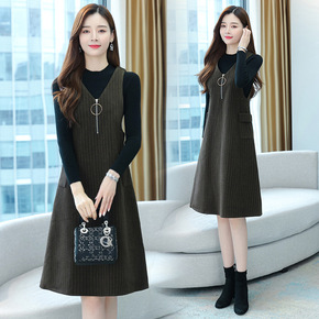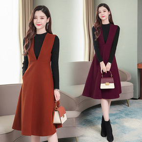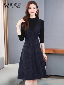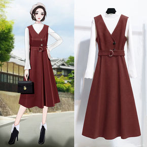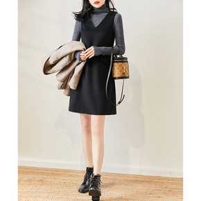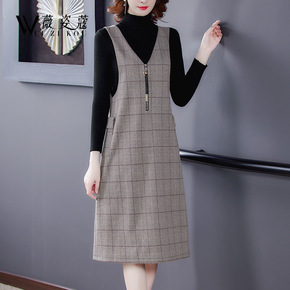 毛呢背带连衣裙中长款马甲裙子春秋秋装2021年新款...