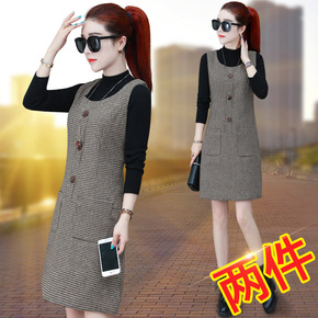 春秋显瘦减龄洋气时尚套装马甲裙毛呢背心裙女秋冬背带...
