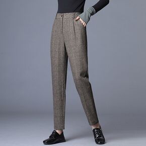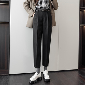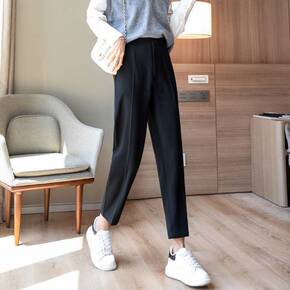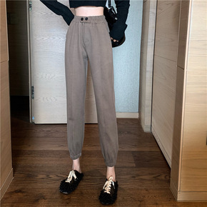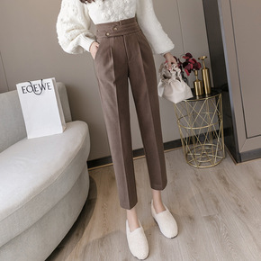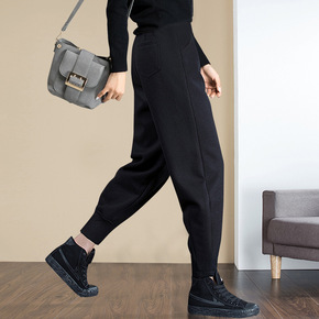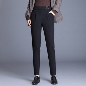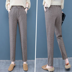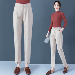 毛呢哈伦裤女2021春季新款高腰显瘦小脚萝卜裤宽松...