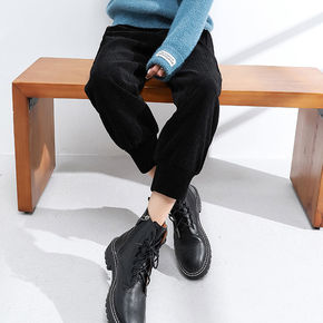 【婴儿绒】加绒加厚灯芯绒工装裤女士秋冬季宽松萝卜休...