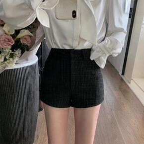 2021秋冬新款实拍现货毛呢短裤闪闪亮小香风高腰a...