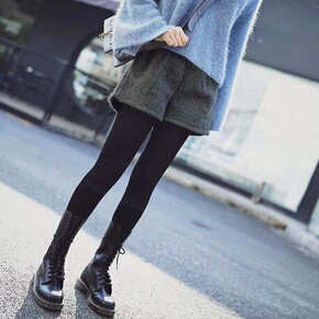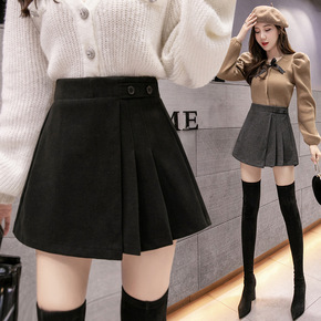 毛呢阔腿短裤女秋冬天配靴子2021年新款打底裙裤显...