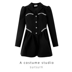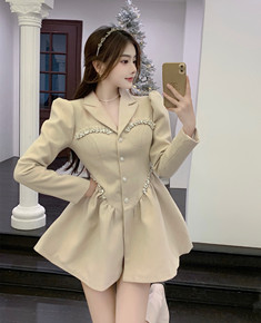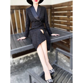 2021冬季新款名媛气质收腰显瘦重工醋酸西装领亮片...