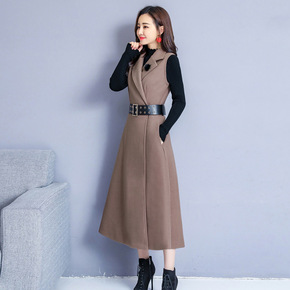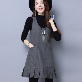 冬季新款亮片毛呢编织连衣裙女韩版气质收腰显瘦背心裙...