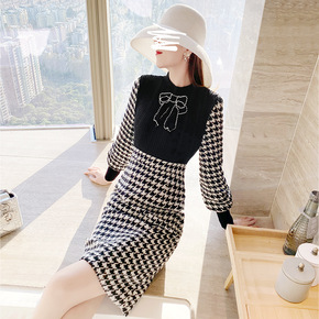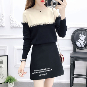 2021冬季新款小香风高领针织毛衣两件套毛呢半身裙...