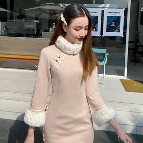 新款2021年冬季小个子气质内搭打底裙法式复古毛呢...