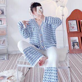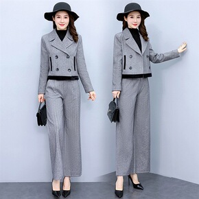 2022秋装小香风长袖针织衫套装女+高腰长裤阔腿裤...