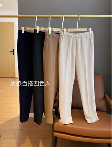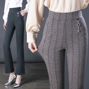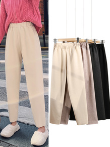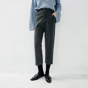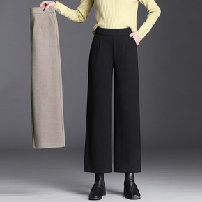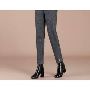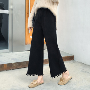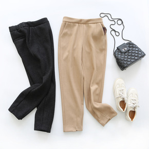 18年冬季款女装松紧腰毛呢九分裤加厚保暖显瘦哈伦裤...