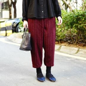 「私密款」秋冬新款日系复古弧形阔腿无腰头休闲裤宽松...