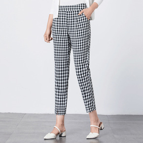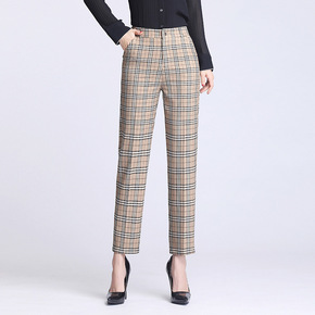 复古格子直筒裤女宽松春季新款韩版高腰显瘦垂感休闲西...