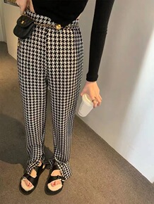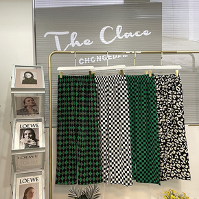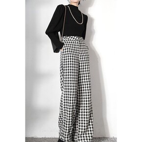 千鸟格女阔腿裤高腰垂感休闲裤女士春季新款宽松显瘦百...