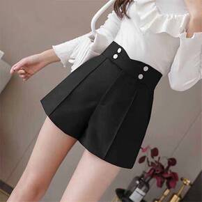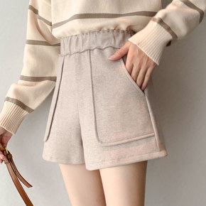 短裤女冬季新款韩版设计感亮丝毛呢高腰a字阔腿显瘦钉...