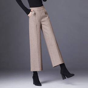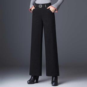 温柔风高腰坠感毛呢高腰阔腿裤女2018新款直筒显瘦...