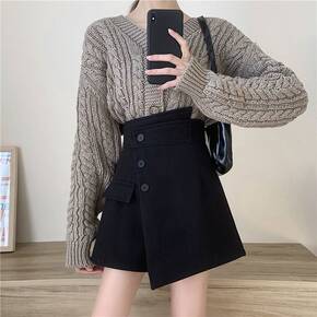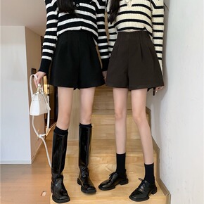 【48小时发货】毛呢短裤女秋冬季2021新款呢子a...
