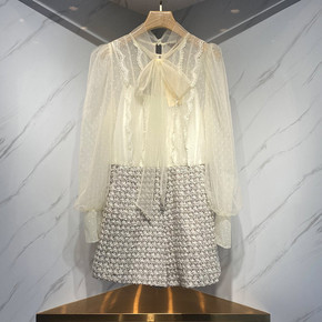 2022早春新品时髦编织细格花软尼减龄学院风复古格...