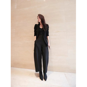 春秋冬三季新款原单法国MAJ*丝绒背带休闲裤烟管裤...