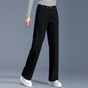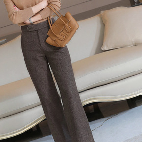毛呢松紧直筒裤女秋冬22年新款职业30-34周岁阔...