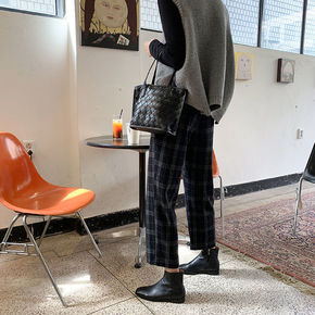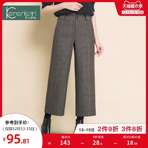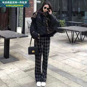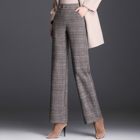 格子毛呢阔腿裤女2021年秋冬季新款高腰垂感直筒裤...