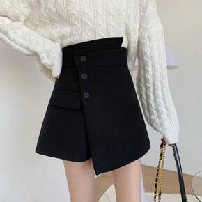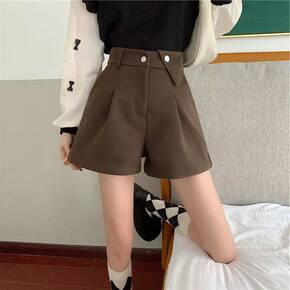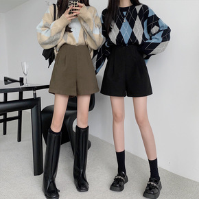 2022秋冬季新款高腰毛呢短裤黑色a字显瘦宽松阔腿...