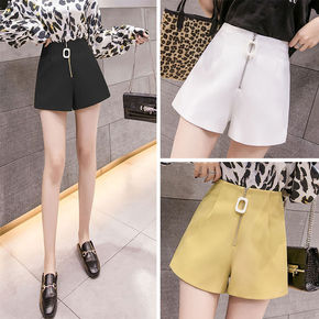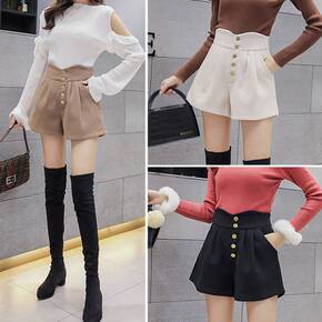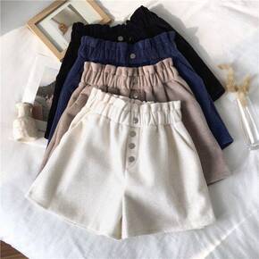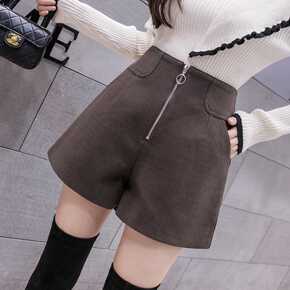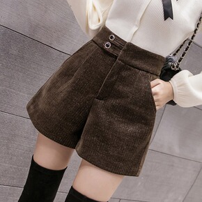 毛呢短裤女秋新款高腰a字阔腿裤时尚显瘦宽松打底裤外...