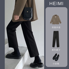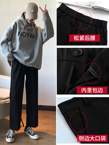 2022秋冬新款拉链高腰宽松阔腿裤百搭靴裤显瘦毛呢...