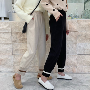阔腿裤卫裤女2022秋冬新款加厚加绒外穿毛呢休闲拖...
