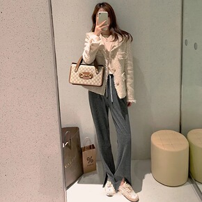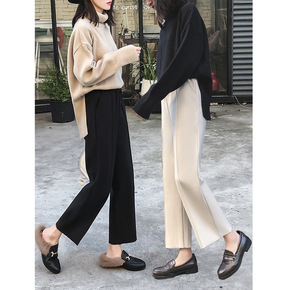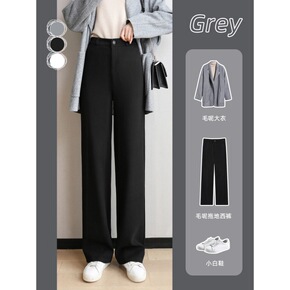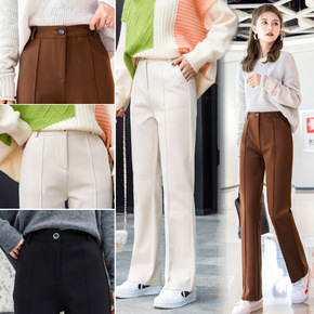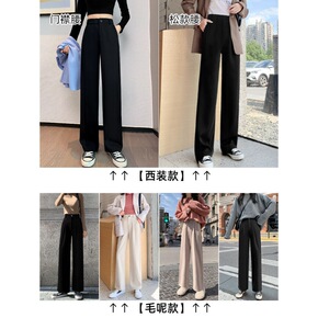 毛呢裤子女2020秋冬新款高腰垂感宽松百搭休闲长裤...