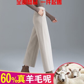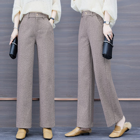 秋冬新款毛呢加厚阔腿女裤宽松大码高腰显瘦直筒大脚休...